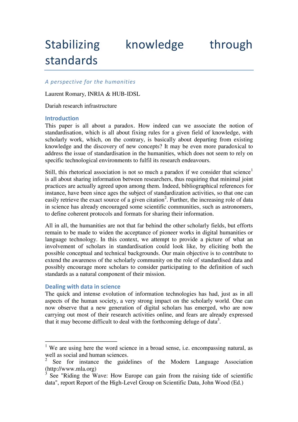 It is usual to consider that standards generate mixed feelings among scientists. They are often seen as not really reflecting the state of the art in a given domain and a hindrance to scientific creativity. Still, scientists should theoretically be at the best place to bring their expertise into standard developments, being even more neutral on issues that may typically be related to competing industrial interests. Even if it could be thought of as even more complex to think about developping standards in the humanities, we will show how this can be made feasible through the experience gained both within the Text Encoding Initiative consortium and the International Organisation for Standardisation. By taking the specific case of lexical resources, we will try to show how this brings about new ideas for designing future research infrastructures in the human and social sciences.