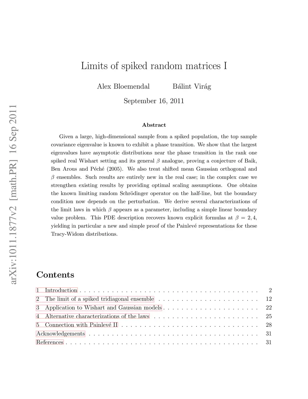 Limits of spiked random matrices I