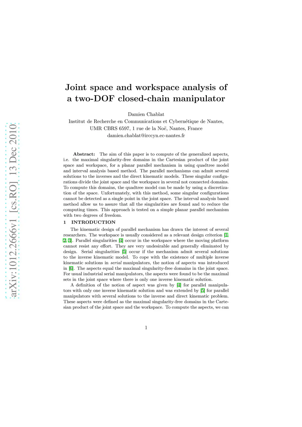 Joint space and workspace analysis of a two-DOF closed-chain manipulator