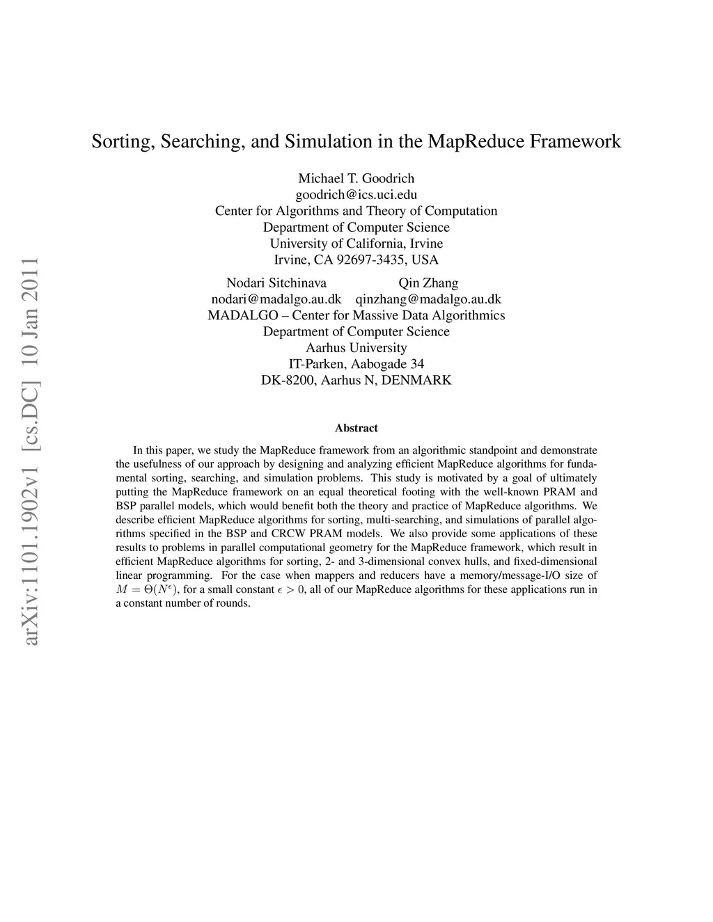Sorting, Searching, and Simulation in the MapReduce Framework