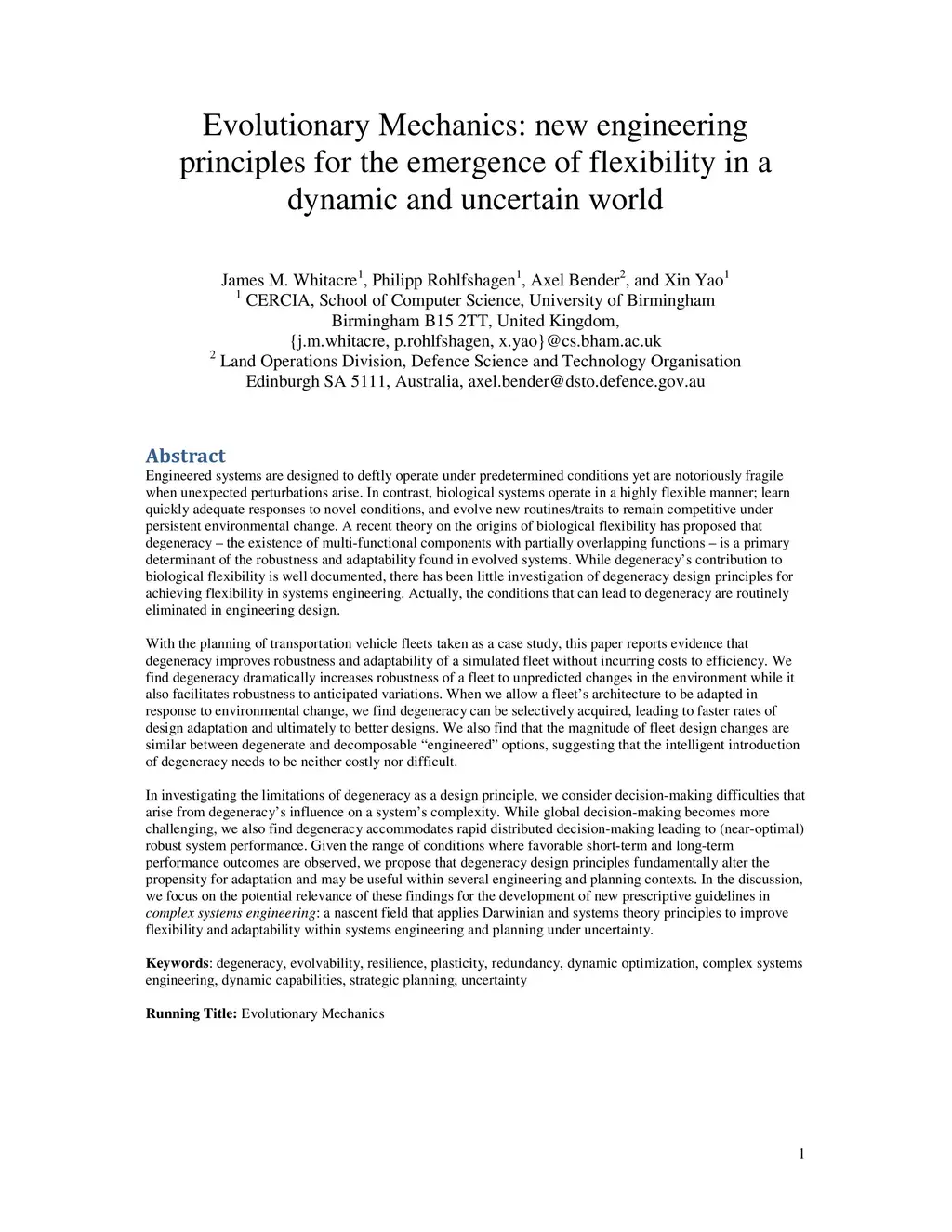 Evolutionary Mechanics: new engineering principles for the emergence of
