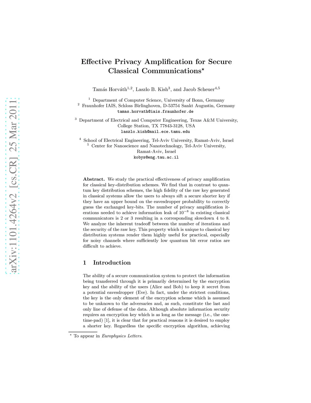 Effective Privacy Amplification for Secure Classical Communications