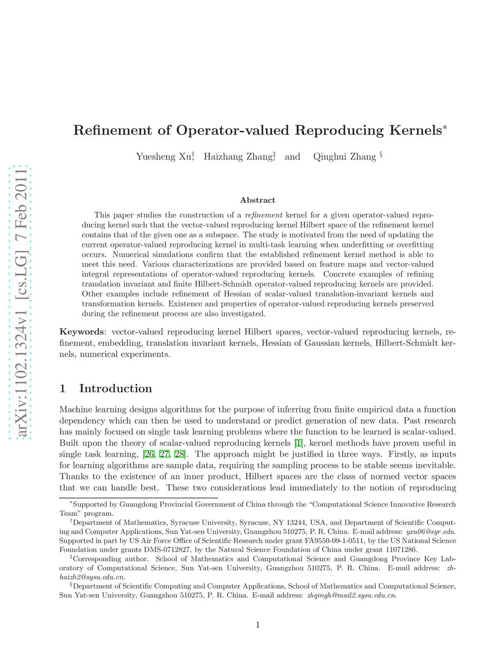 Refinement of Operator-valued Reproducing Kernels