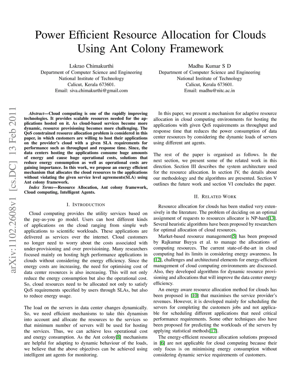 Cloud computing is one of the rapidly improving technologies. It provides scalable resources needed for the ap- plications hosted on it. As cloud-based services become more dynamic, resource provisioning becomes more challenging. The QoS constrained resource allocation problem is considered in this paper, in which customers are willing to host their applications on the provider's cloud with a given SLA requirements for performance such as throughput and response time. Since, the data centers hosting the applications consume huge amounts of energy and cause huge operational costs, solutions that reduce energy consumption as well as operational costs are gaining importance. In this work, we propose an energy efficient mechanism that allocates the cloud resources to the applications without violating the given service level agreements(SLA) using Ant colony framework.