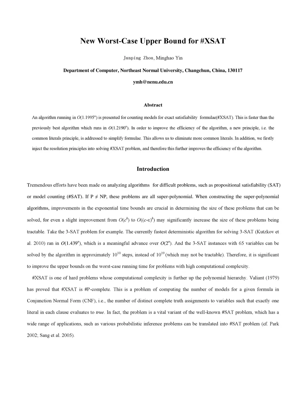 An algorithm running in O(1.1995n) is presented for counting models for exact satisfiability formulae(#XSAT). This is faster than the previously best algorithm which runs in O(1.2190n). In order to improve the efficiency of the algorithm, a new principle, i.e. the common literals principle, is addressed to simplify formulae. This allows us to eliminate more common literals. In addition, we firstly inject the resolution principles into solving #XSAT problem, and therefore this further improves the efficiency of the algorithm.