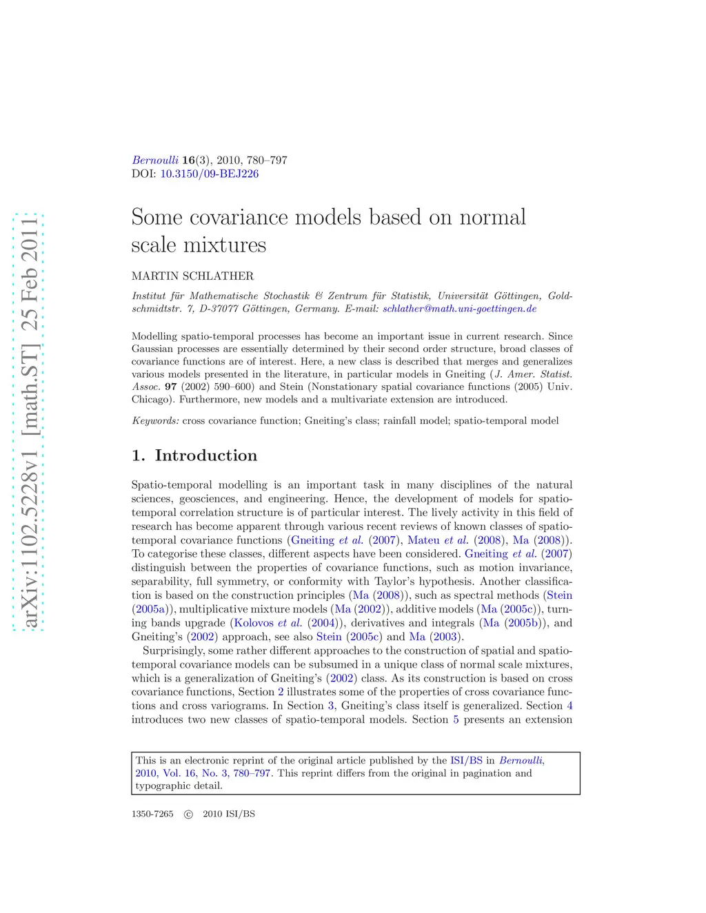 Some covariance models based on normal scale mixtures