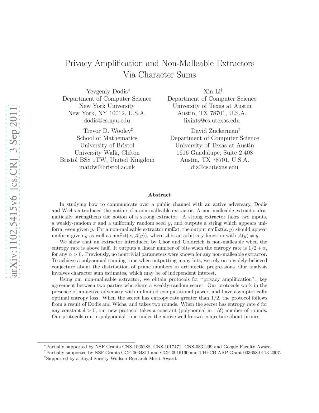 Privacy Amplification and Non-Malleable Extractors Via Character Sums
