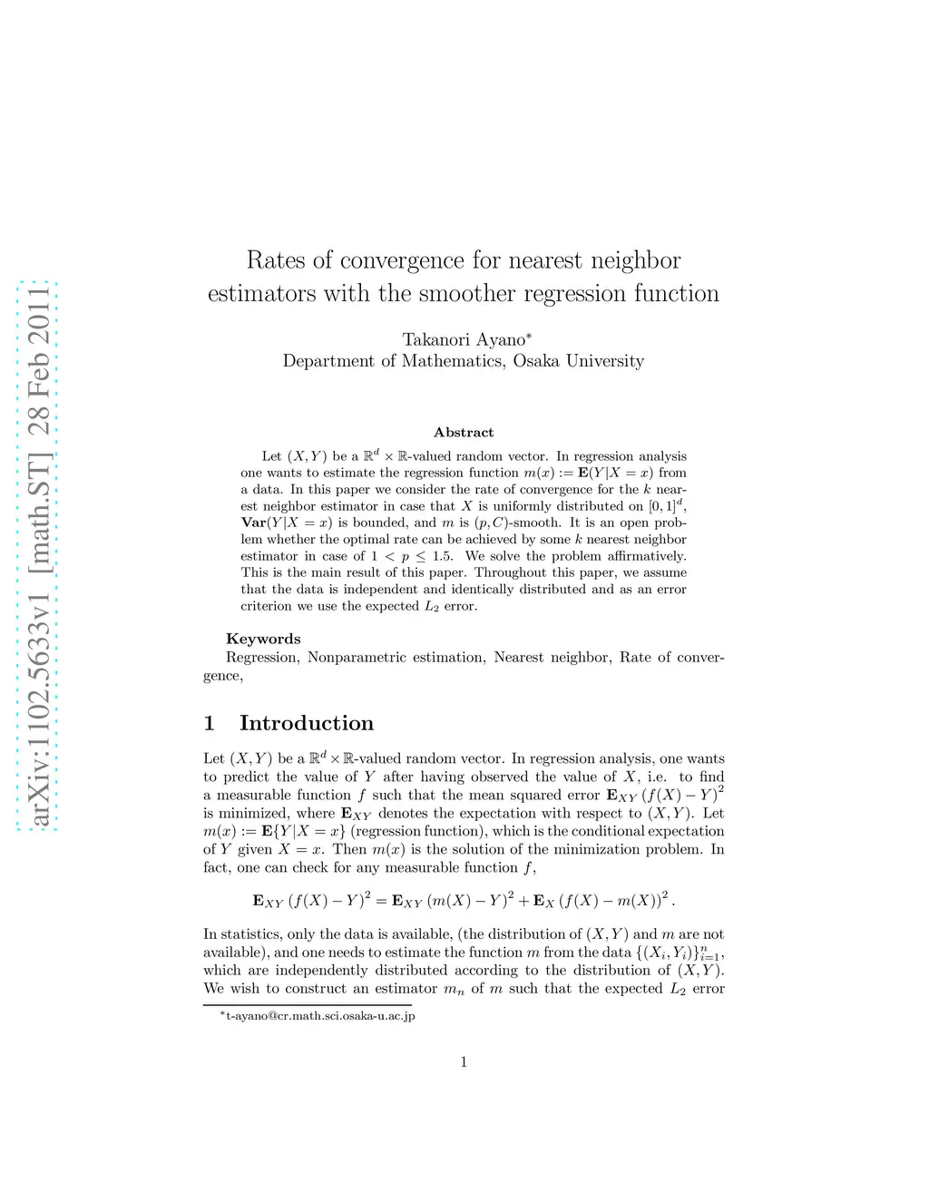 In regression analysis one wants to estimate the regression function from a data. In this paper we consider the rate of convergence for the nearest neighbor estimator in case that the regression function is -smooth. It is an open problem whether the optimal rate can be achieved by some nearest neighbor estimator in case that is on (1,1.5]. We solve the problem affirmatively. This is the main result of this paper. Throughout this paper, we assume that the data is independent and identically distributed and as an error criterion we use the expected error.