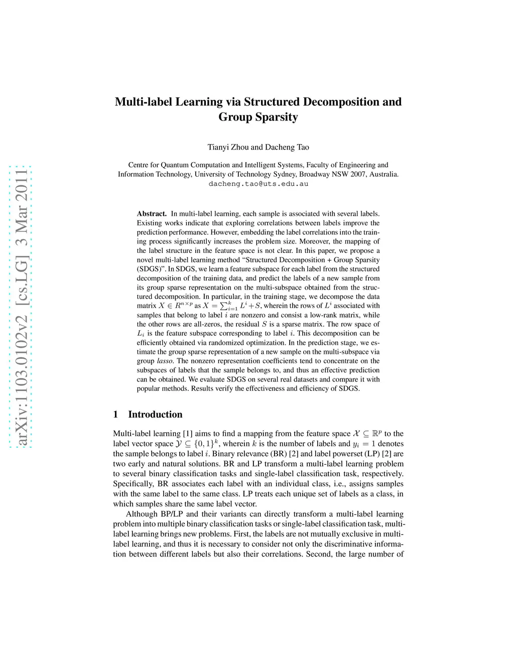 Multi-label Learning via Structured Decomposition and Group Sparsity