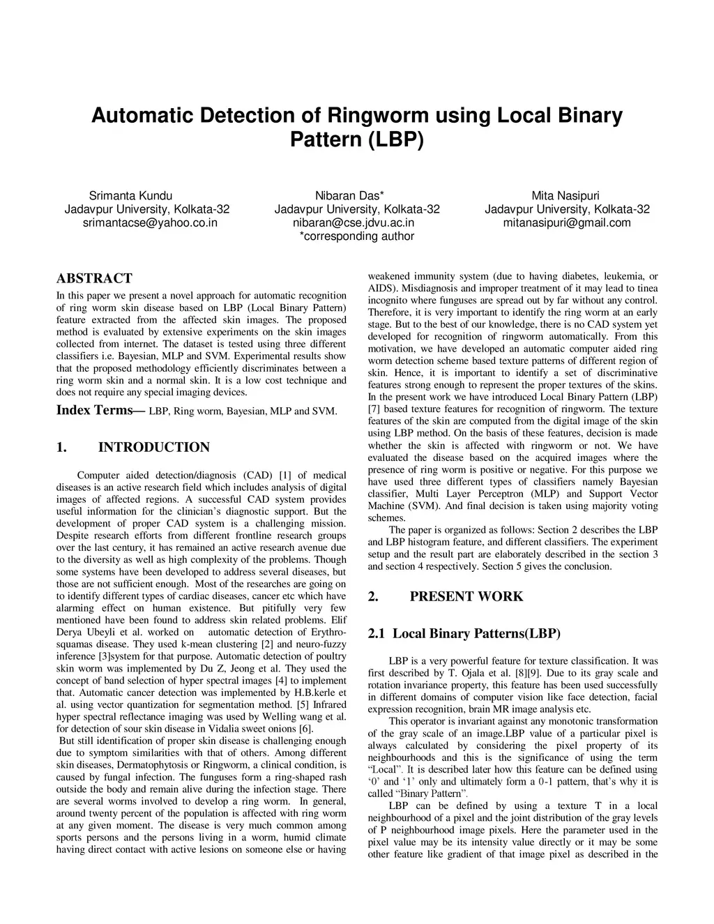 Automatic Detection of Ringworm using Local Binary Pattern (LBP)