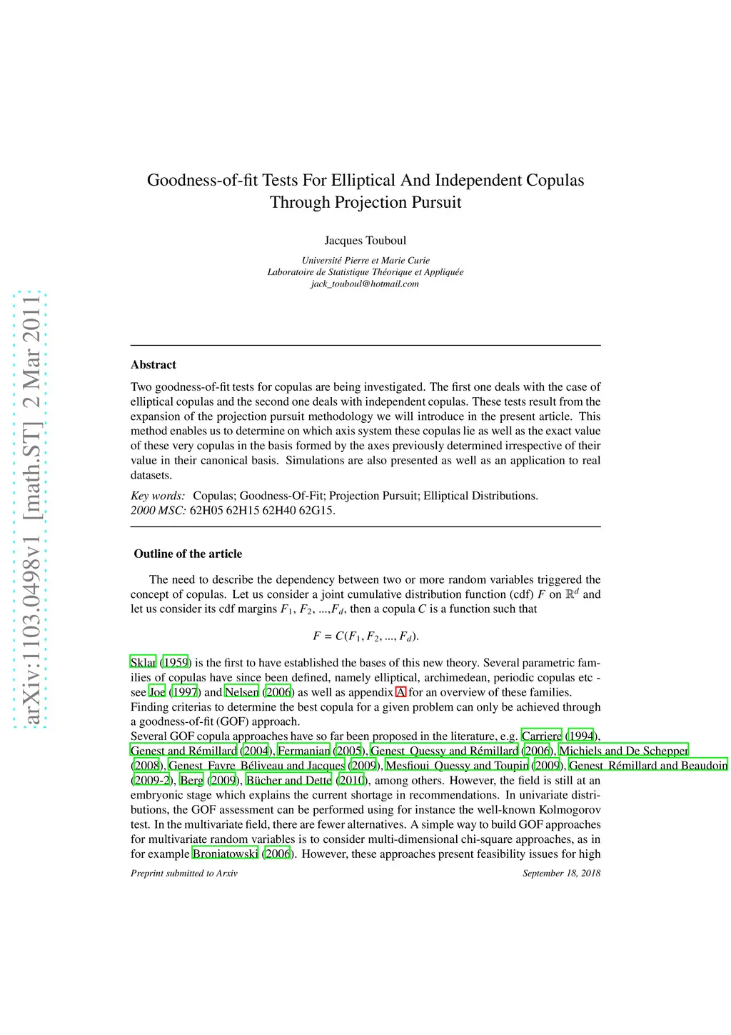 Goodness-of-fit Tests For Elliptical And Independent Copulas Through