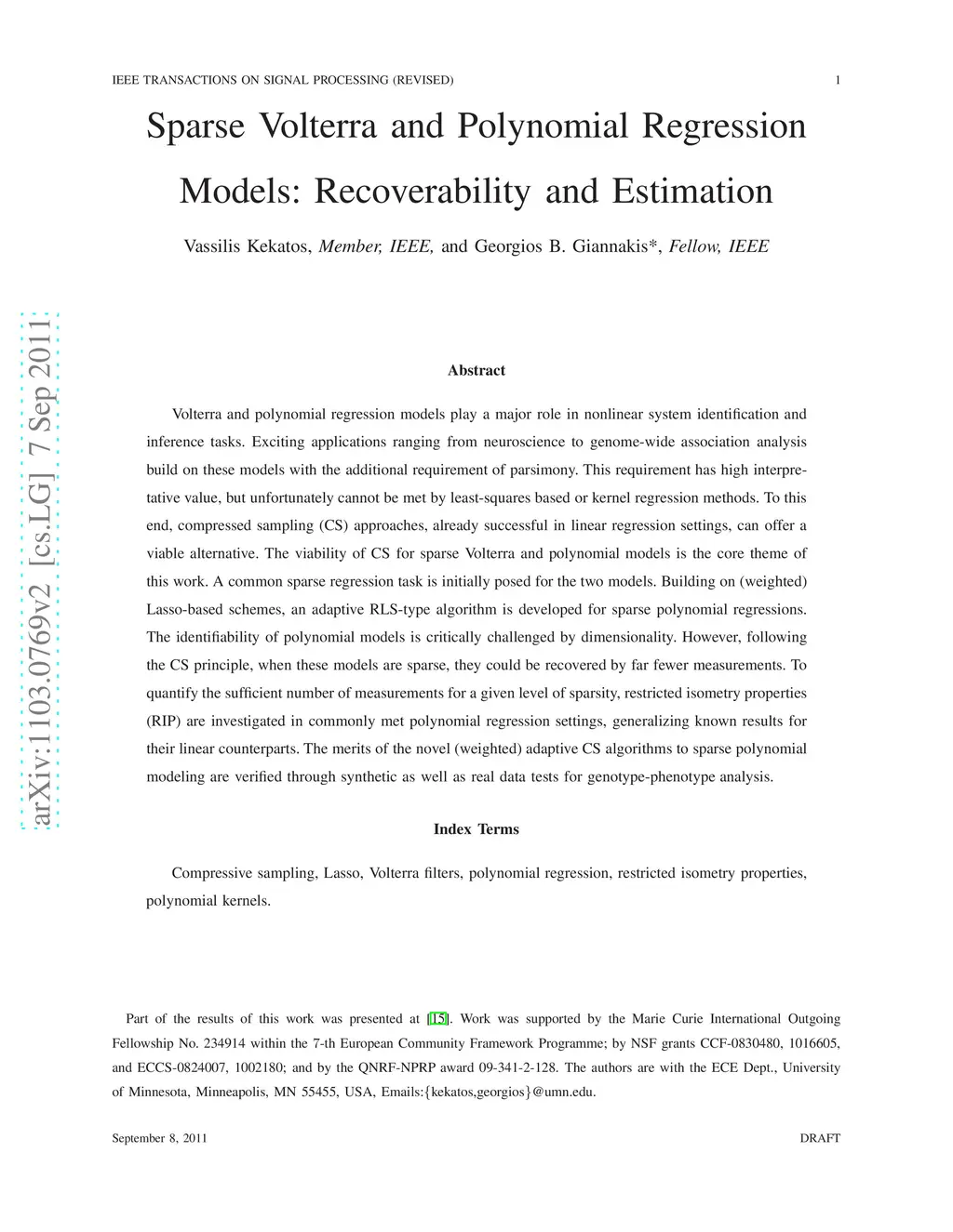Sparse Volterra and Polynomial Regression Models: Recoverability and