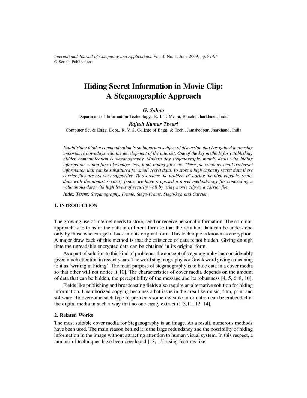 Hiding Secret Information in Movie Clip: A Steganographic Approach