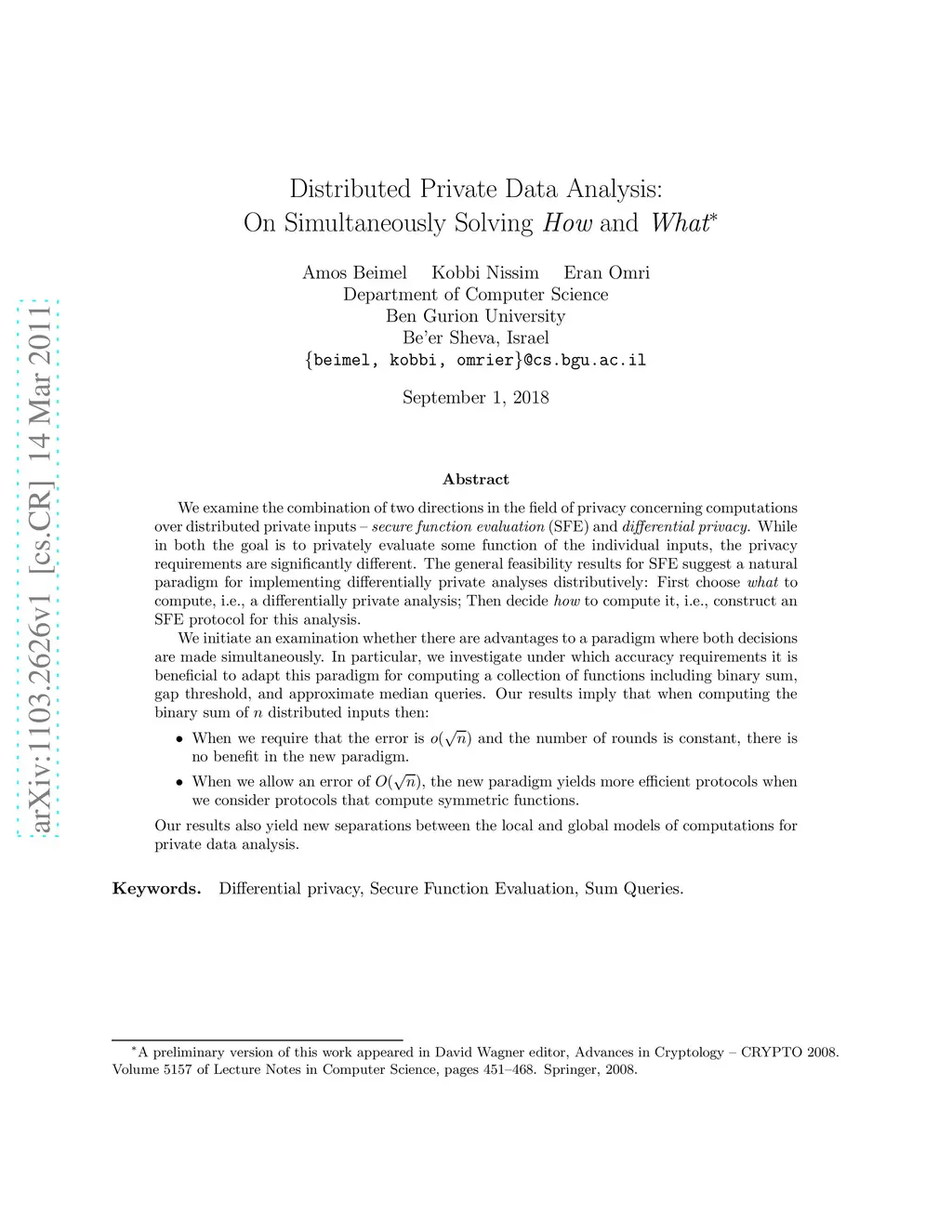Distributed Private Data Analysis: On Simultaneously Solving How and