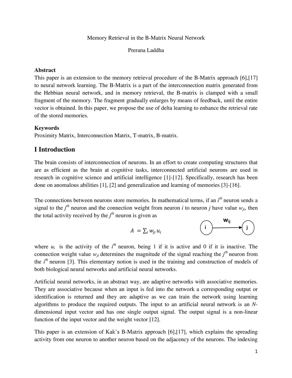 This paper is an extension to the memory retrieval procedure of the B-Matrix approach [6],[17] to neural network learning. The B-Matrix is a part of the interconnection matrix generated from the Hebbian neural network, and in memory retrieval, the B-matrix is clamped with a small fragment of the memory. The fragment gradually enlarges by means of feedback, until the entire vector is obtained. In this paper, we propose the use of delta learning to enhance the retrieval rate of the stored memories.