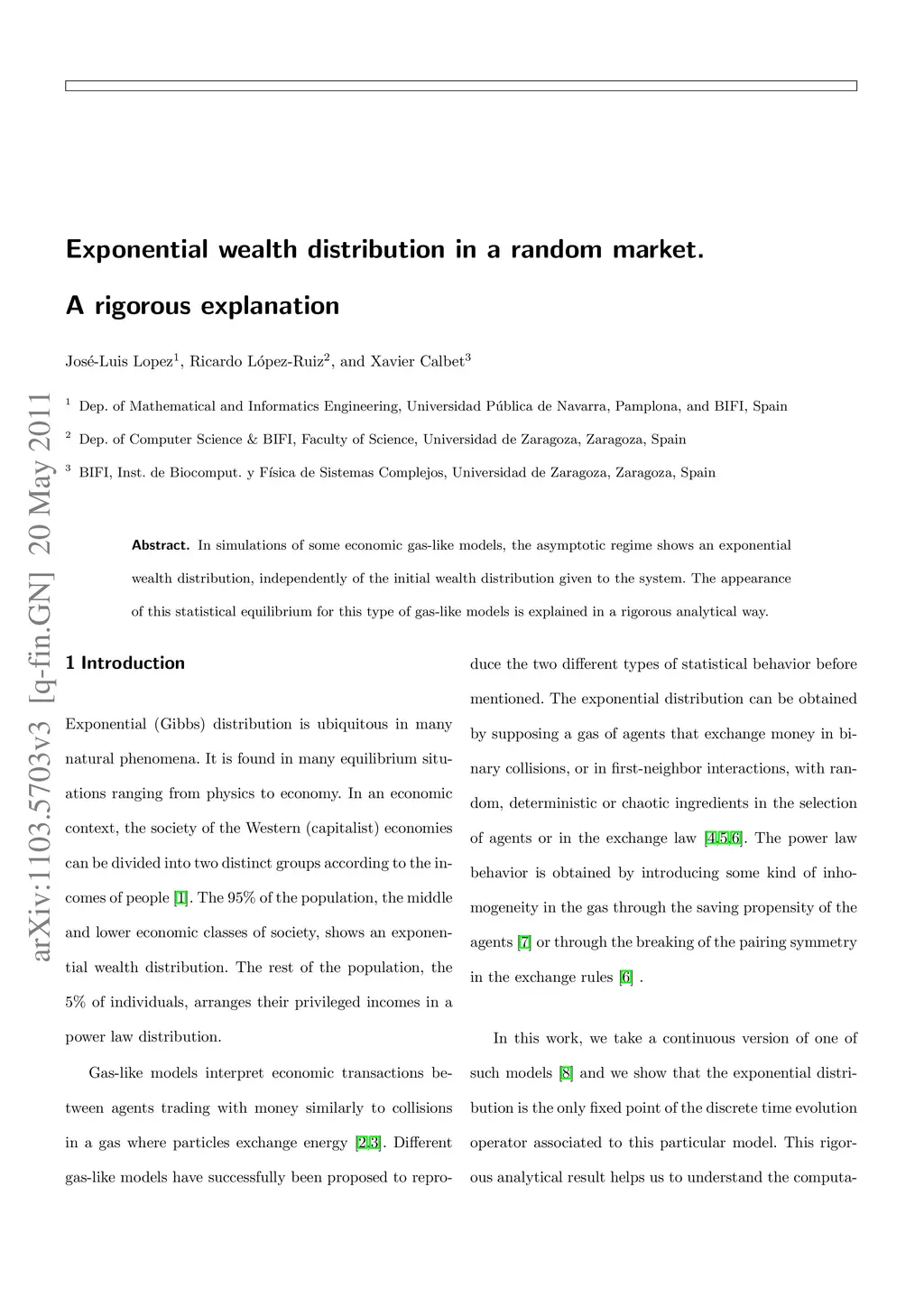 In simulations of some economic gas-like models, the asymptotic regime shows an exponential wealth distribution, independently of the initial wealth distribution given to the system. The appearance of this statistical equilibrium for this type of gas-like models is explained in a rigorous analytical way.
