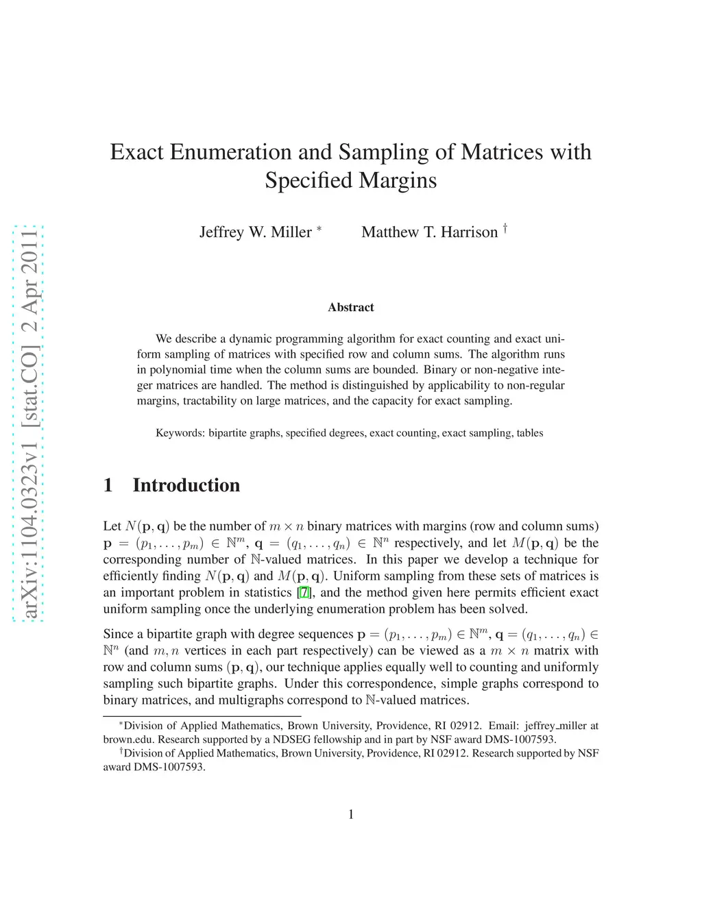 Exact Enumeration and Sampling of Matrices with Specified Margins