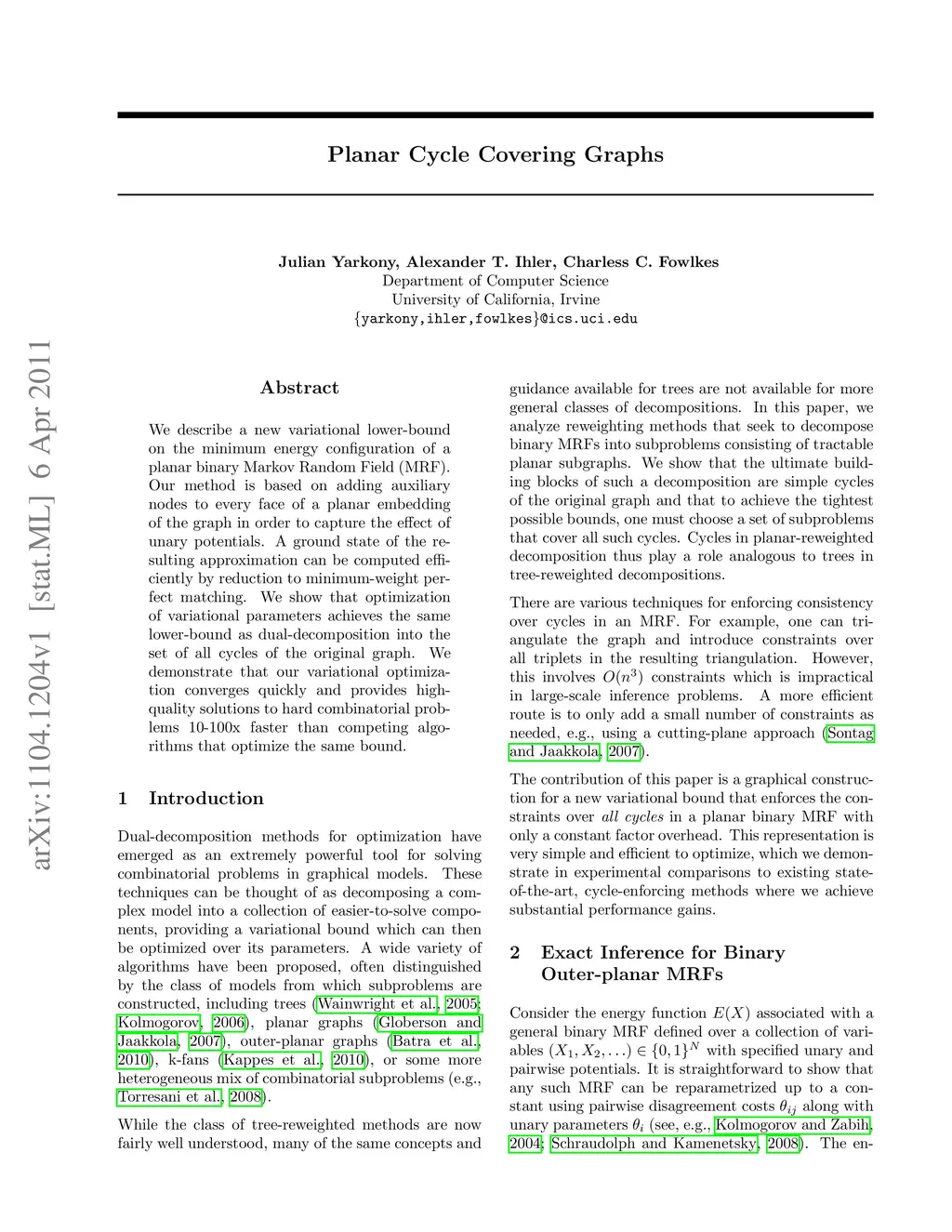 We describe a new variational lower-bound on the minimum energy configuration of a planar binary Markov Random Field (MRF). Our method is based on adding auxiliary nodes to every face of a planar embedding of the graph in order to capture the effect of unary potentials. A ground state of the resulting approximation can be computed efficiently by reduction to minimum-weight perfect matching. We show that optimization of variational parameters achieves the same lower-bound as dual-decomposition into the set of all cycles of the original graph. We demonstrate that our variational optimization converges quickly and provides high-quality solutions to hard combinatorial problems 10-100x faster than competing algorithms that optimize the same bound.