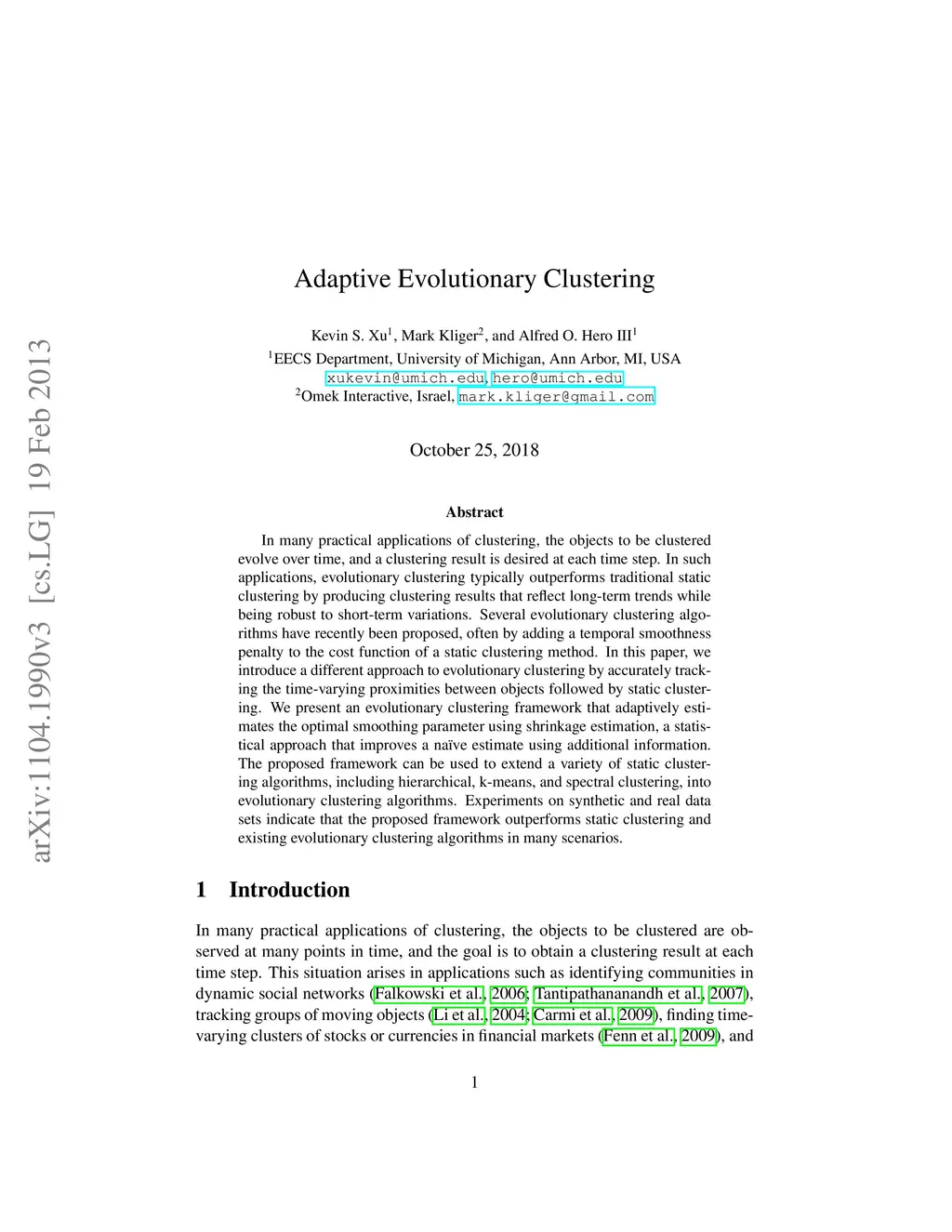 Adaptive Evolutionary Clustering