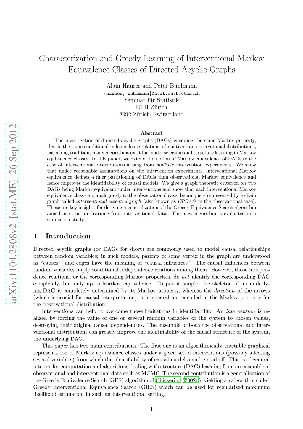 The investigation of directed acyclic graphs (DAGs) encoding the same Markov property, that is the same conditional independence relations of multivariate observational distributions, has a long tradition; many algorithms exist for model selection and structure learning in Markov equivalence classes. In this paper, we extend the notion of Markov equivalence of DAGs to the case of interventional distributions arising from multiple intervention experiments. We show that under reasonable assumptions on the intervention experiments, interventional Markov equivalence defines a finer partitioning of DAGs than observational Markov equivalence and hence improves the identifiability of causal models. We give a graph theoretic criterion for two DAGs being Markov equivalent under interventions and show that each interventional Markov equivalence class can, analogously to the observational case, be uniquely represented by a chain graph called interventional essential graph (also known as CPDAG in the observational case). These are key insights for deriving a generalization of the Greedy Equivalence Search algorithm aimed at structure learning from interventional data. This new algorithm is evaluated in a simulation study.