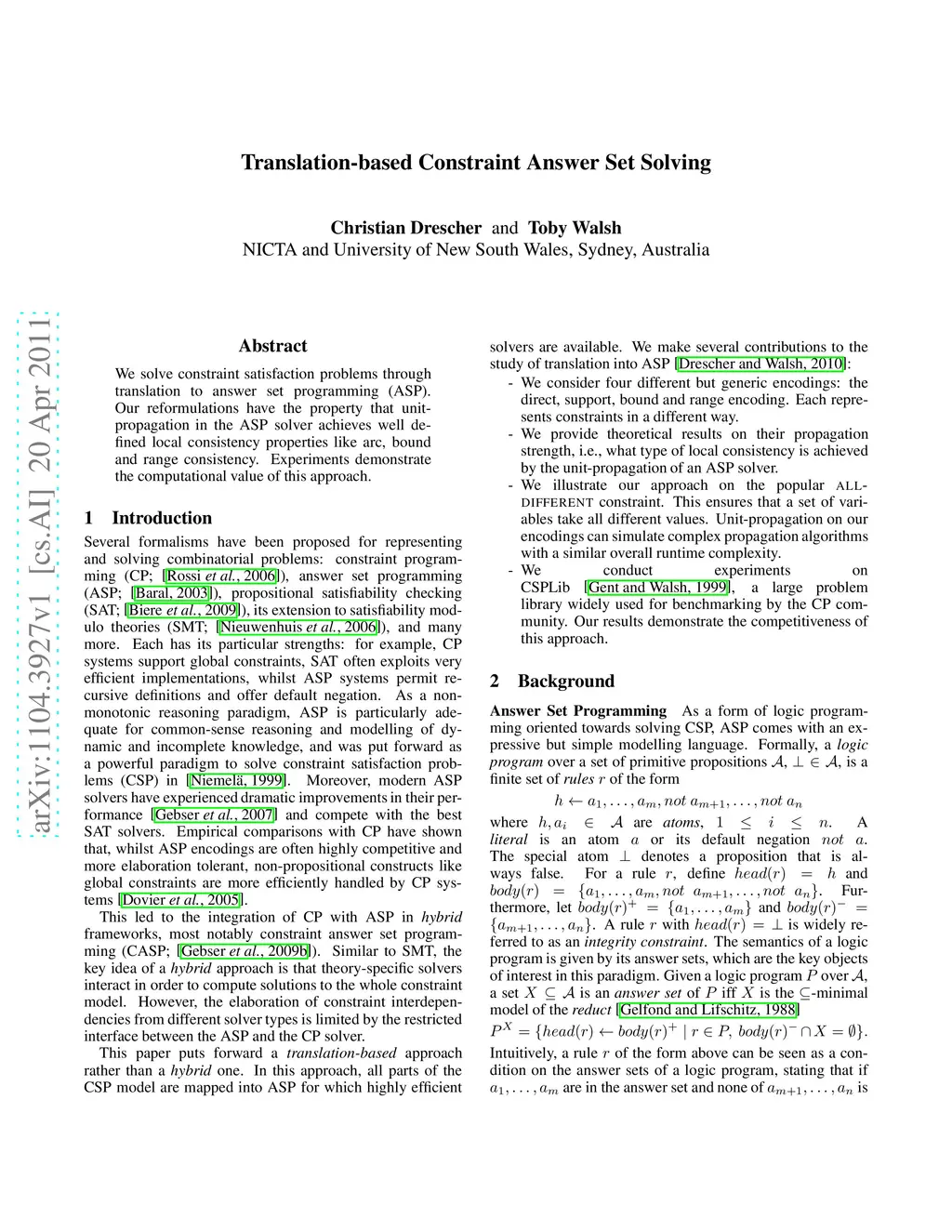 We solve constraint satisfaction problems through translation to answer set programming (ASP). Our reformulations have the property that unit-propagation in the ASP solver achieves well defined local consistency properties like arc, bound and range consistency. Experiments demonstrate the computational value of this approach.