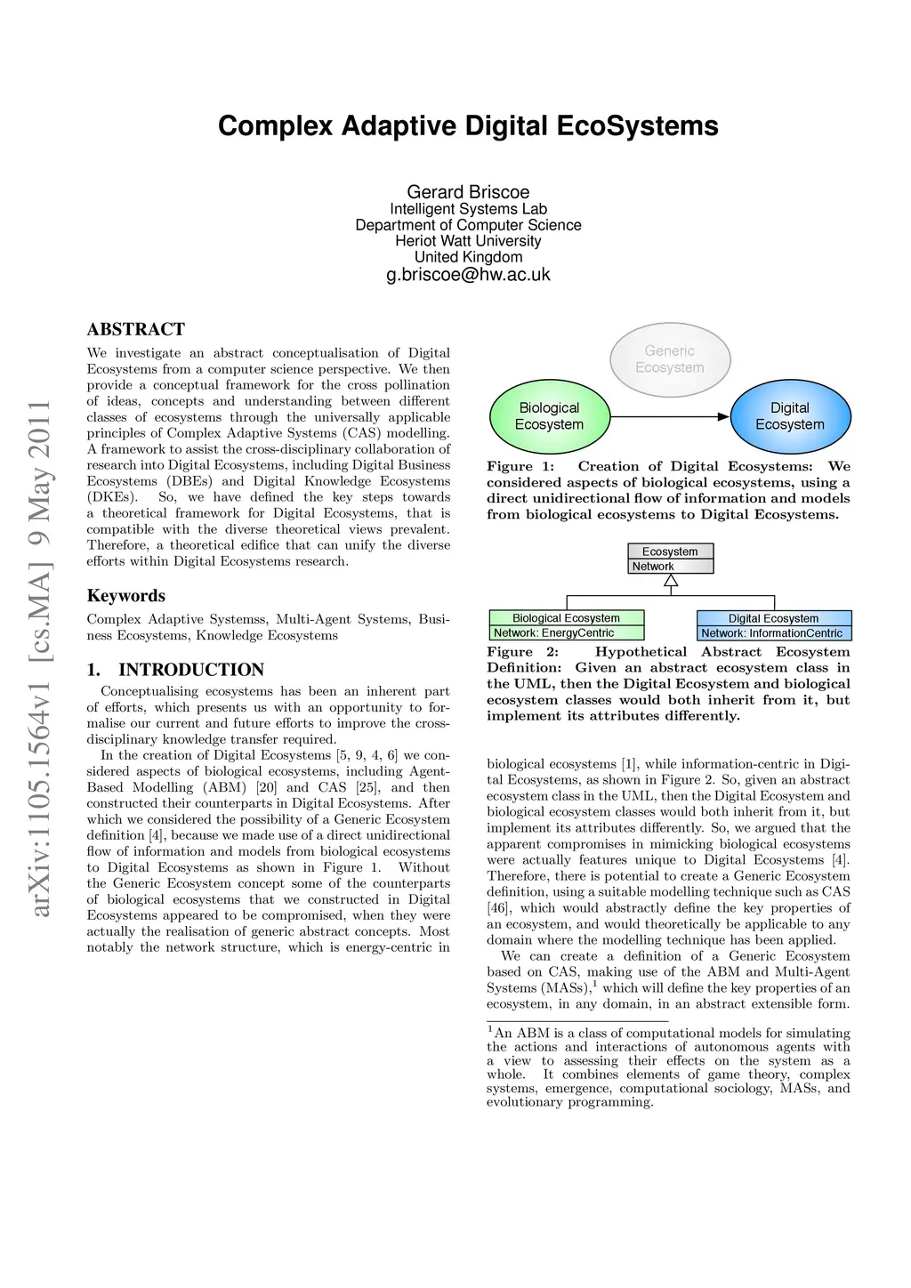We investigate an abstract conceptualisation of DigitalEcosystems from a computer science perspective. We then provide a conceptual framework for the cross pollination of ideas, concepts and understanding between different classes of ecosystems through the universally applicable principles of Complex Adaptive Systems (CAS) modelling. A framework to assist the cross-disciplinary collaboration of research into Digital Ecosystems, including Digital BusinessEcosystems (DBEs) and Digital Knowledge Ecosystems (DKEs). So, we have defined the key steps towards a theoretical framework for Digital Ecosystems, that is compatible with the diverse theoretical views prevalent. Therefore, a theoretical edifice that can unify the diverse efforts within Digital Ecosystems research.