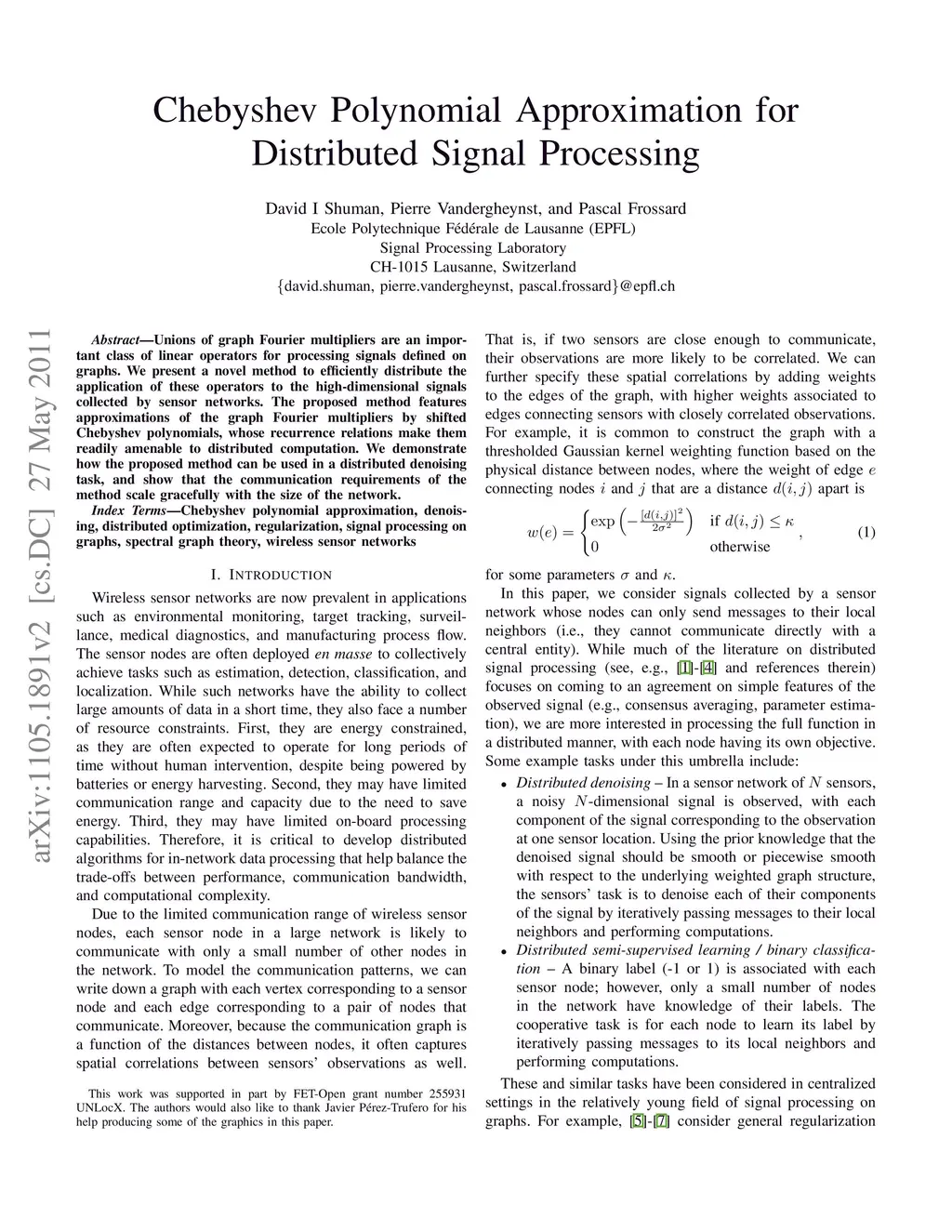 Chebyshev Polynomial Approximation for Distributed Signal Processing