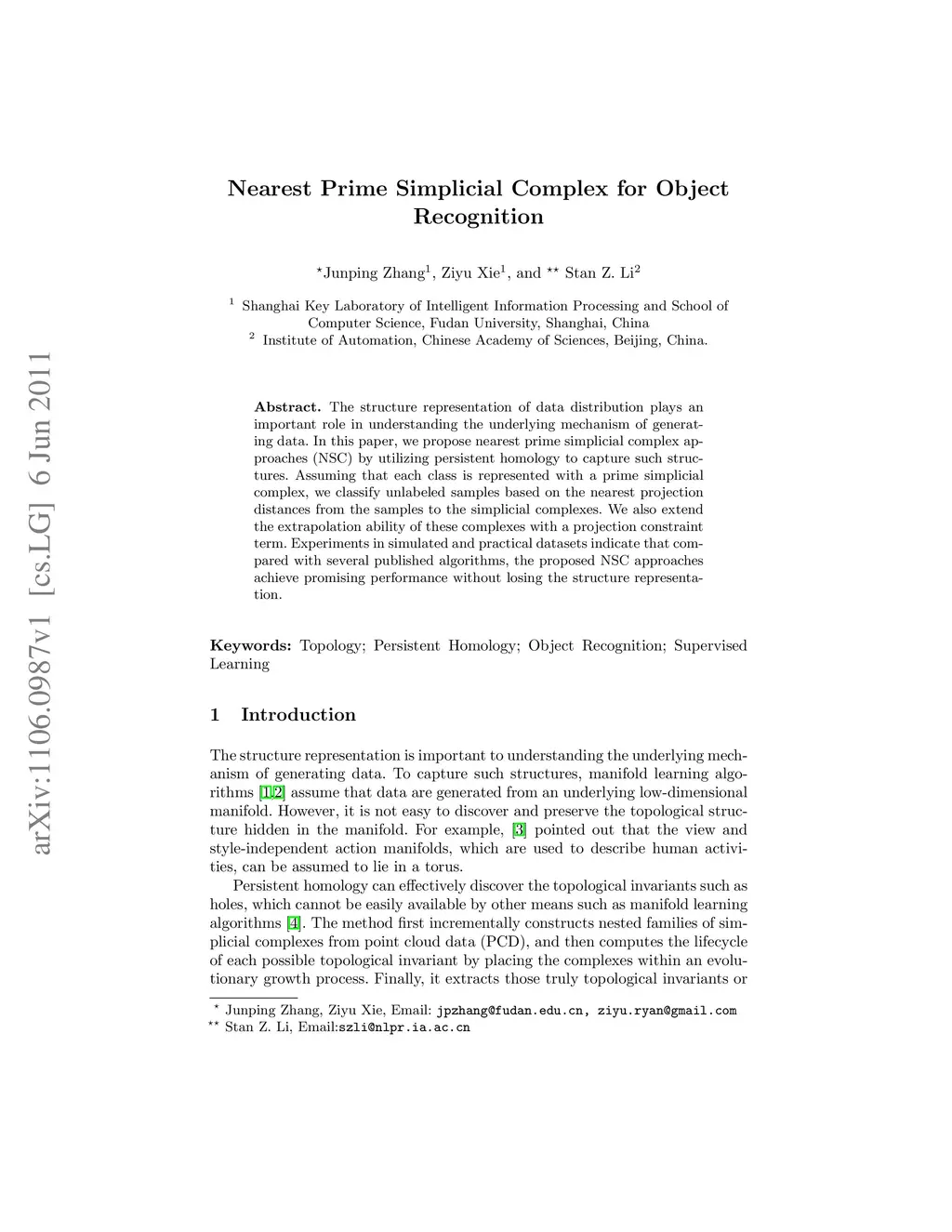 Nearest Prime Simplicial Complex for Object Recognition