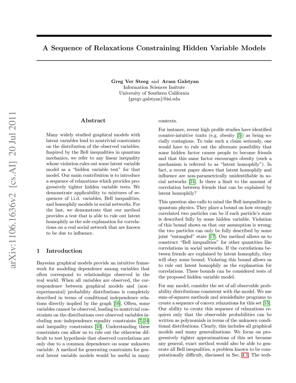 A Sequence of Relaxations Constraining Hidden Variable Models