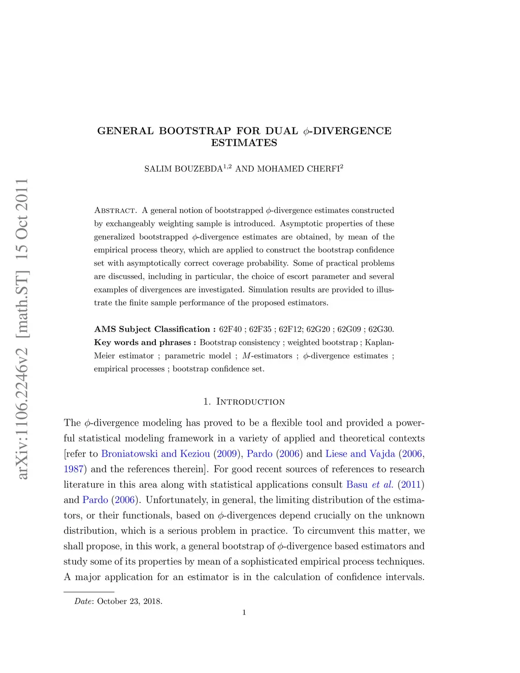 A general notion of bootstrapped -divergences estimates constructed by exchangeably weighting sample is introduced. Asymptotic properties of these generalized bootstrapped phi-divergences estimates are obtained by using the empirical process theory. Some of practical problems are discussed. Simulation results are used to illustrate the finite sample performance of the proposed estimators