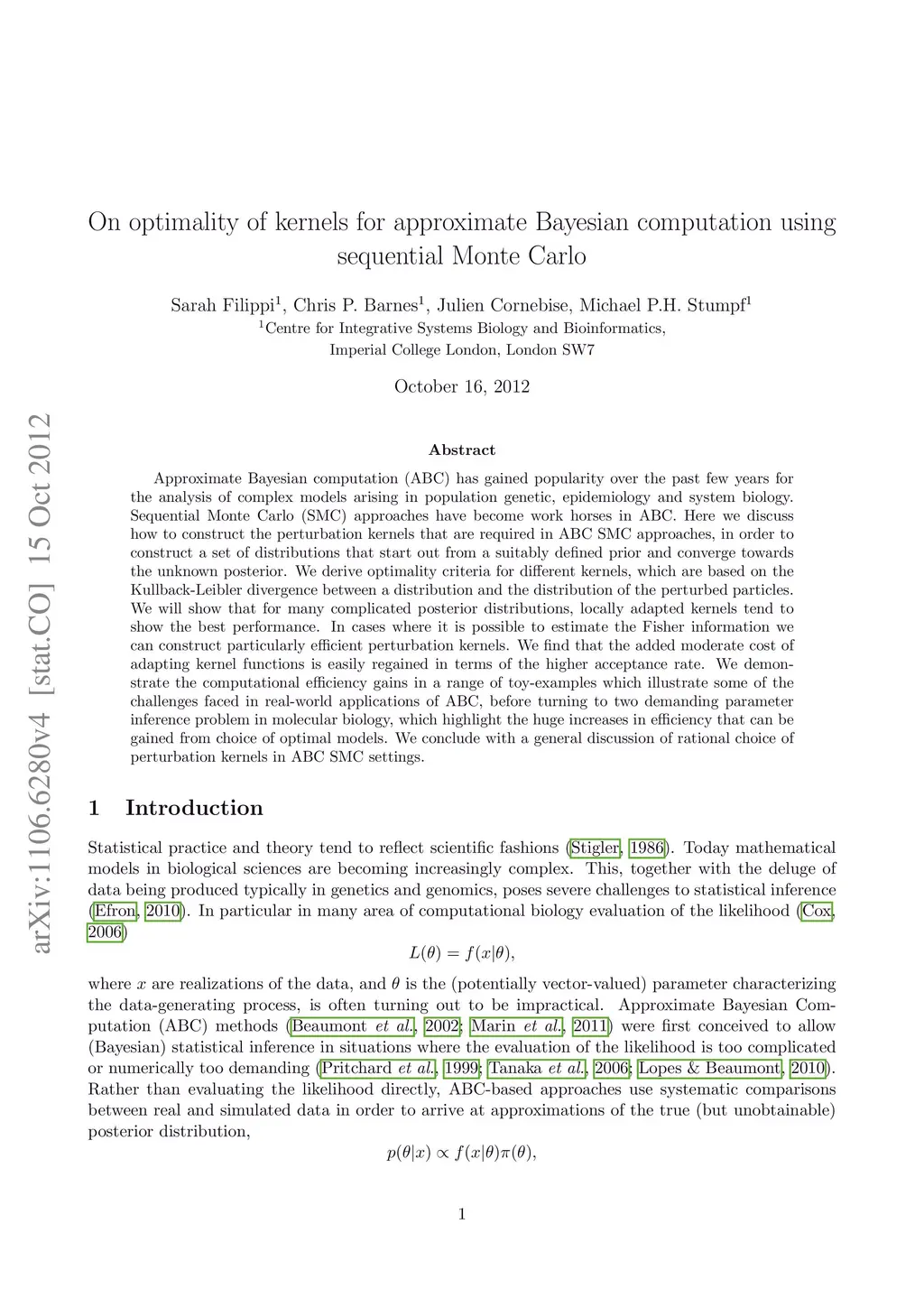 Approximate Bayesian computation (ABC) has gained popularity over the past few years for the analysis of complex models arising in population genetic, epidemiology and system biology. Sequential Monte Carlo (SMC) approaches have become work horses in ABC. Here we discuss how to construct the perturbation kernels that are required in ABC SMC approaches, in order to construct a set of distributions that start out from a suitably defined prior and converge towards the unknown posterior. We derive optimality criteria for different kernels, which are based on the Kullback-Leibler divergence between a distribution and the distribution of the perturbed particles. We will show that for many complicated posterior distributions, locally adapted kernels tend to show the best performance. In cases where it is possible to estimate the Fisher information we can construct particularly efficient perturbation kernels. We find that the added moderate cost of adapting kernel functions is easily regained in terms of the higher acceptance rate. We demonstrate the computational efficiency gains in a range of toy-examples which illustrate some of the challenges faced in real-world applications of ABC, before turning to two demanding parameter inference problem in molecular biology, which highlight the huge increases in efficiency that can be gained from choice of optimal models. We conclude with a general discussion of rational choice of perturbation kernels in ABC SMC settings.