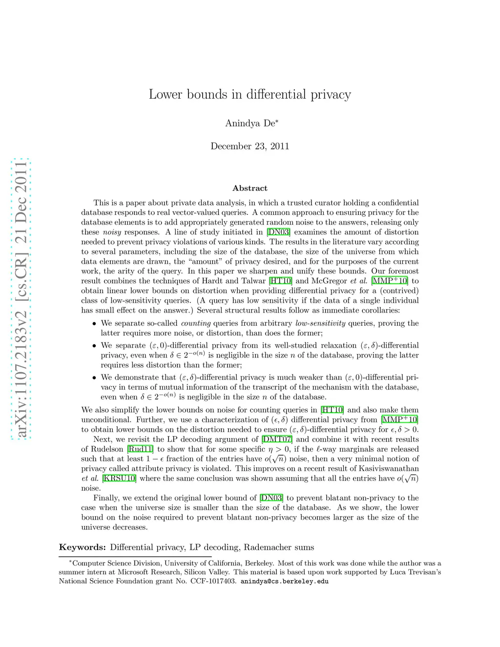This is a paper about private data analysis, in which a trusted curator holding a confidential database responds to real vector-valued queries. A common approach to ensuring privacy for the database elements is to add appropriately generated random noise to the answers, releasing only these {\em noisy} responses. In this paper, we investigate various lower bounds on the noise required to maintain different kind of privacy guarantees.