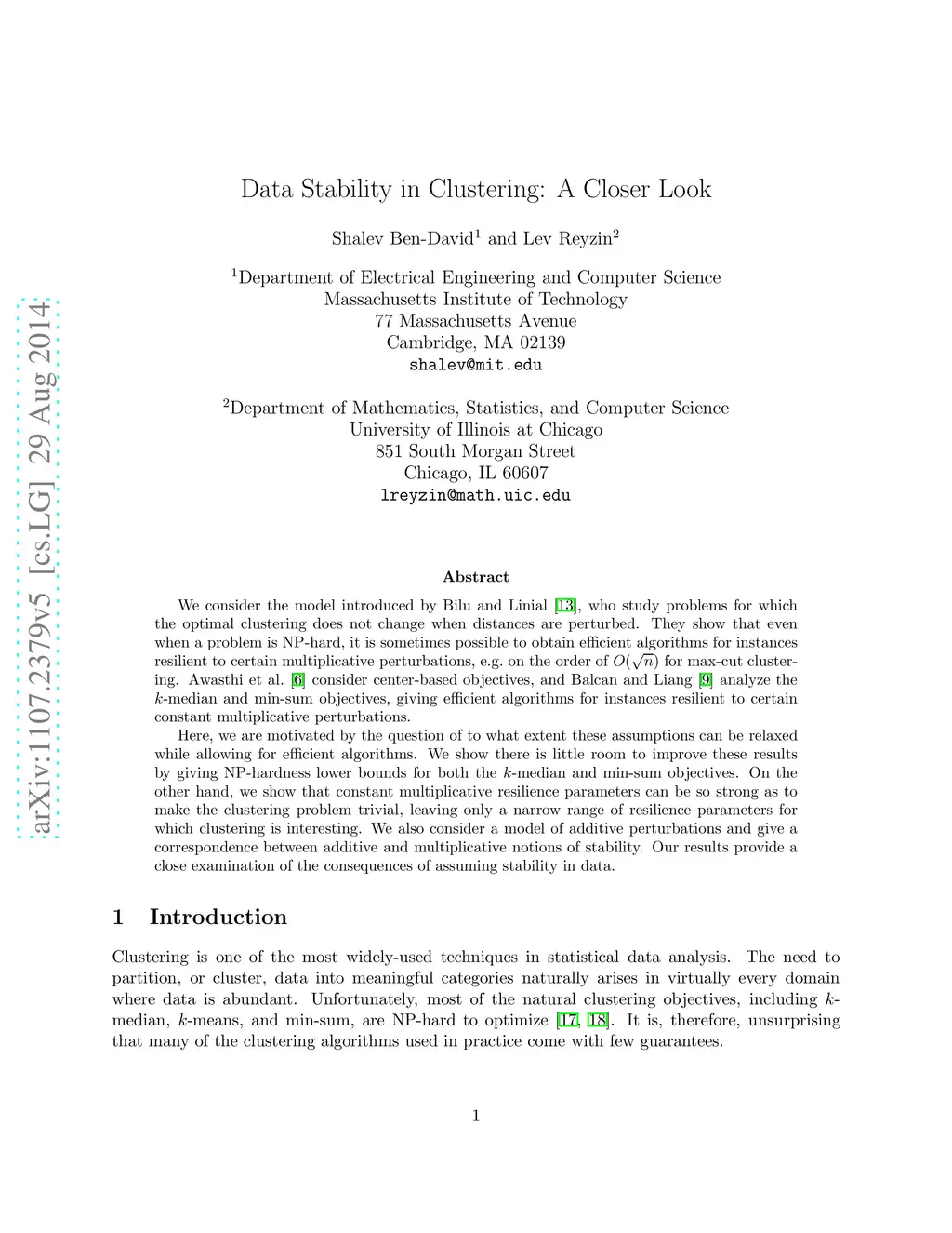 This paper considers the model introduced by Bilu and Linial (2010), who study problems for which the optimal clustering does not change when the distances are perturbed by multiplicative factors. They show that even when a problem is NP-hard, it is sometimes possible to obtain polynomial-time algorithms for instances resilient to large perturbations, e.g. on the order of for max-cut clustering. Awasthi et al. (2010) extend this line of work by considering center-based objectives, and Balcan and Liang (2011) consider the -median and min-sum objectives, giving efficient algorithms for instances resilient to certain constant multiplicative perturbations. Here, we are motivated by the question of to what extent these assumptions can be relaxed while allowing for efficient algorithms. We show there is little room to improve these results by giving NP-hardness lower bounds for both the -median and min-sum objectives. On the other hand, we show that multiplicative resilience parameters, even only on the order of , can be so strong as to make the clustering problem trivial, and we exploit these assumptions to present a simple one pass streaming algorithm for the -median objective. We also consider a model of additive perturbations and give a correspondence between additive and multiplicative notions of stability. Our results provide a close examination of the consequences of assuming, even constant, stability in data.