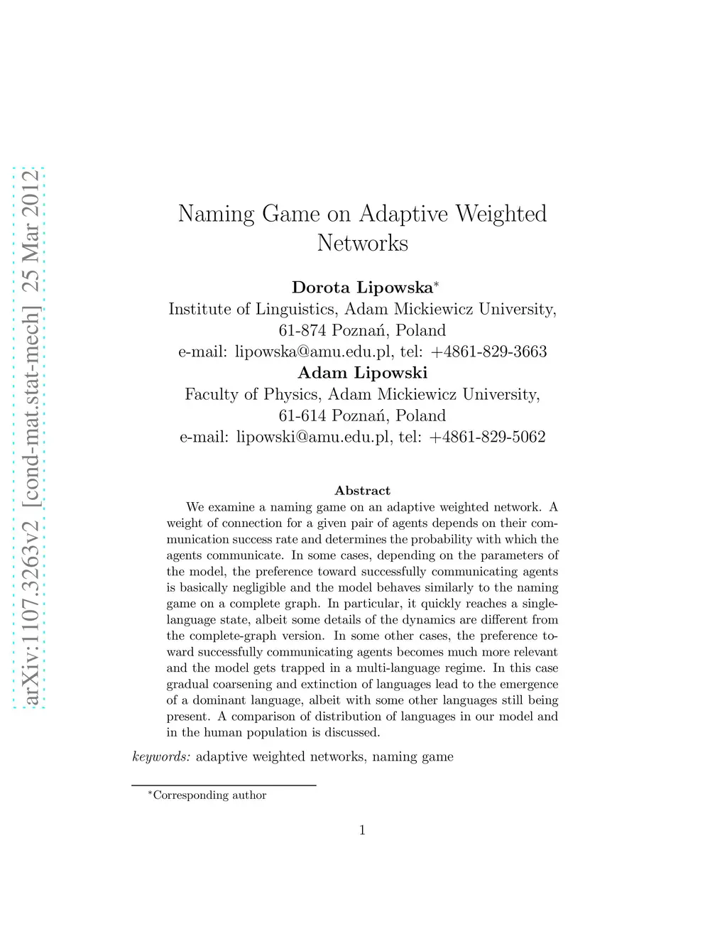 We examine a naming game on an adaptive weighted network. A weight of connection for a given pair of agents depends on their communication success rate and determines the probability with which the agents communicate. In some cases, depending on the parameters of the model, the preference toward successfully communicating agents is basically negligible and the model behaves similarly to the naming game on a complete graph. In particular, it quickly reaches a single-language state, albeit some details of the dynamics are different from the complete-graph version. In some other cases, the preference toward successfully communicating agents becomes much more relevant and the model gets trapped in a multi-language regime. In this case gradual coarsening and extinction of languages lead to the emergence of a dominant language, albeit with some other languages still being present. A comparison of distribution of languages in our model and in the human population is discussed.