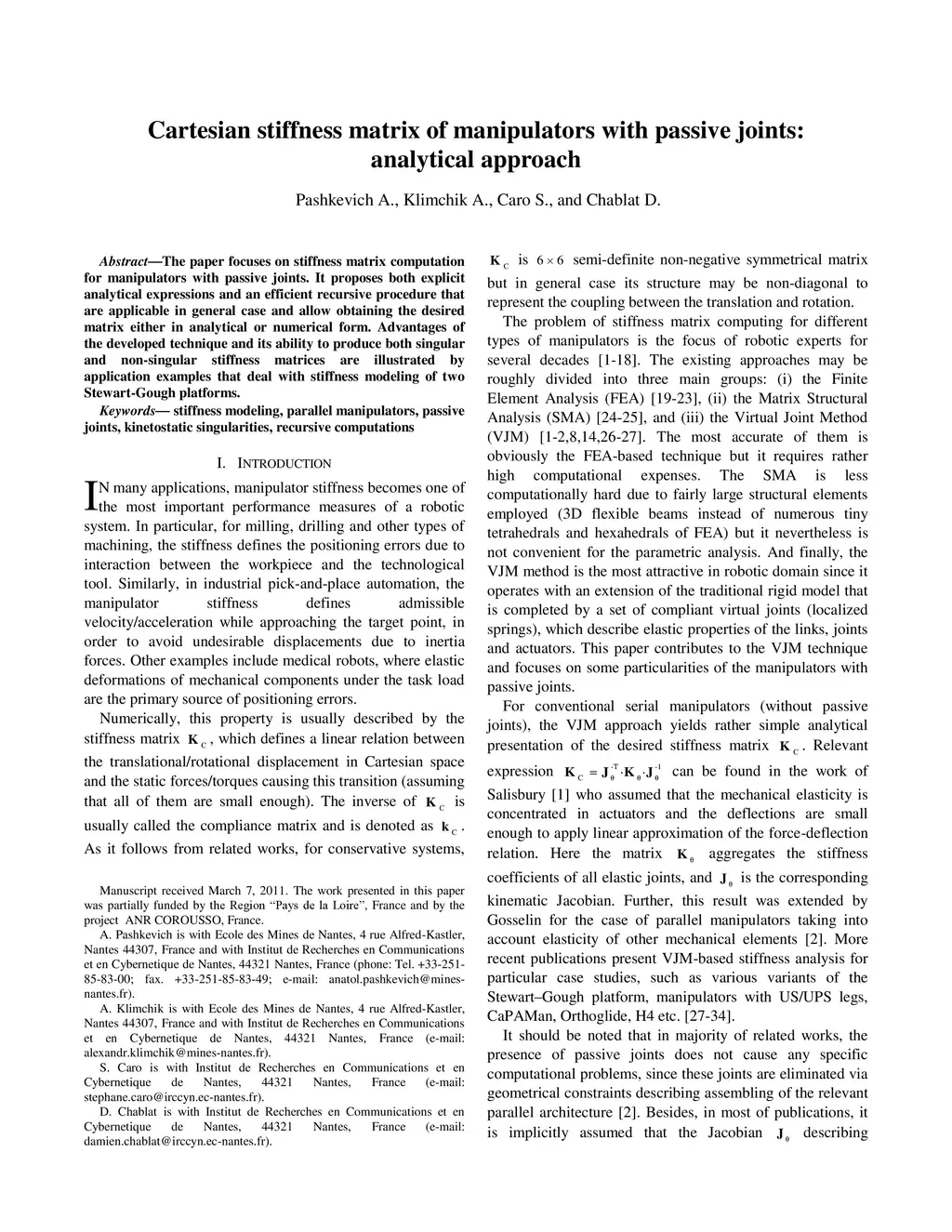 Cartesian stiffness matrix of manipulators with passive joints: