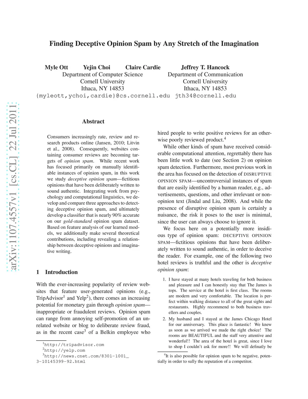 Finding Deceptive Opinion Spam by Any Stretch of the Imagination