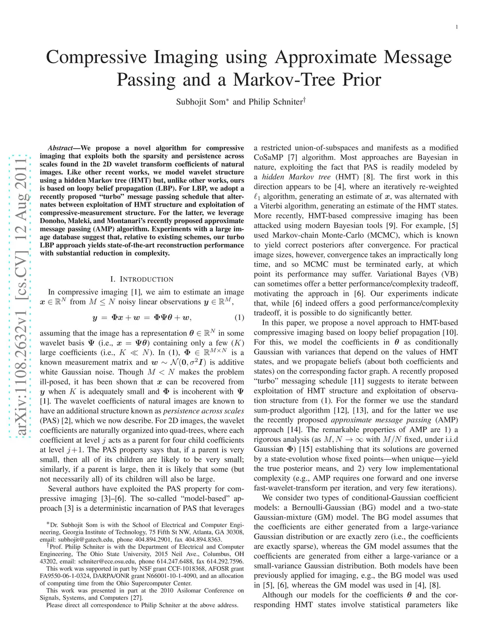 Compressive Imaging using Approximate Message Passing and a Markov-Tree