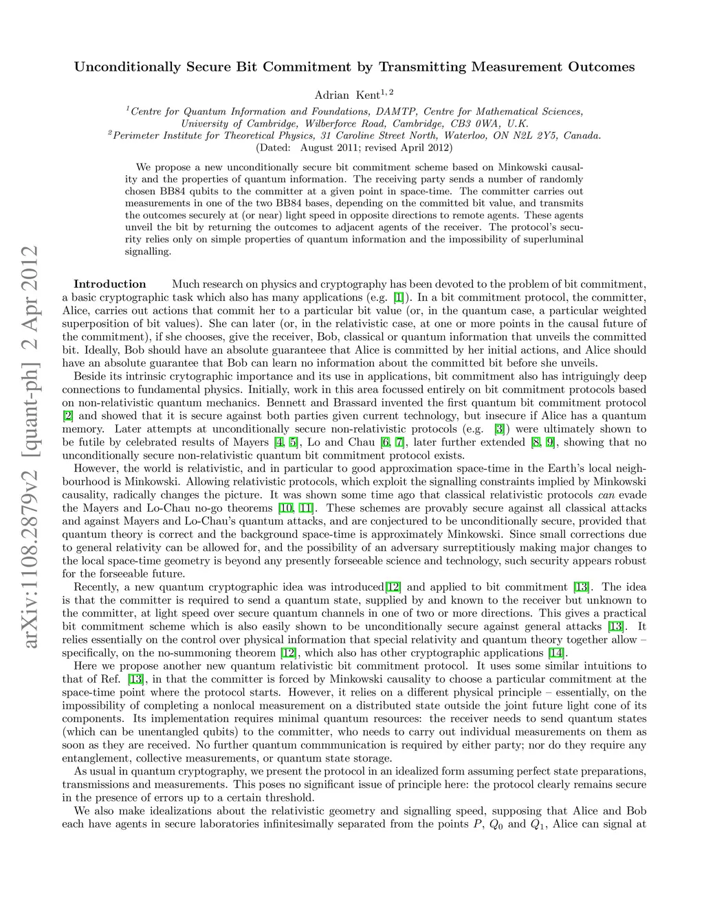 Unconditionally Secure Bit Commitment by Transmitting Measurement