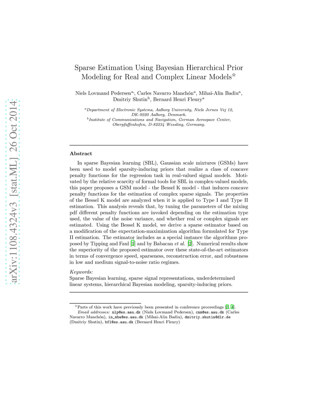 In sparse Bayesian learning (SBL), Gaussian scale mixtures (GSMs) have been used to model sparsity-inducing priors that realize a class of concave penalty functions for the regression task in real-valued signal models. Motivated by the relative scarcity of formal tools for SBL in complex-valued models, this paper proposes a GSM model - the Bessel K model - that induces concave penalty functions for the estimation of complex sparse signals. The properties of the Bessel K model are analyzed when it is applied to Type I and Type II estimation. This analysis reveals that, by tuning the parameters of the mixing pdf different penalty functions are invoked depending on the estimation type used, the value of the noise variance, and whether real or complex signals are estimated. Using the Bessel K model, we derive a sparse estimator based on a modification of the expectation-maximization algorithm formulated for Type II estimation. The estimator includes as a special instance the algorithms proposed by Tipping and Faul [1] and by Babacan et al. [2]. Numerical results show the superiority of the proposed estimator over these state-of-the-art estimators in terms of convergence speed, sparseness, reconstruction error, and robustness in low and medium signal-to-noise ratio regimes.