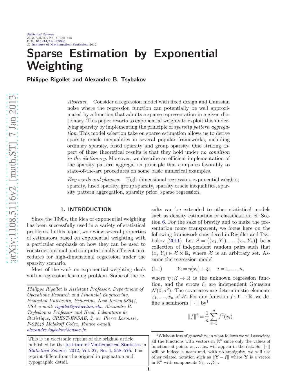 Consider a regression model with fixed design and Gaussian noise where the regression function can potentially be well approximated by a function that admits a sparse representation in a given dictionary. This paper resorts to exponential weights to exploit this underlying sparsity by implementing the principle of sparsity pattern aggregation. This model selection take on sparse estimation allows us to derive sparsity oracle inequalities in several popular frameworks, including ordinary sparsity, fused sparsity and group sparsity. One striking aspect of these theoretical results is that they hold under no condition in the dictionary. Moreover, we describe an efficient implementation of the sparsity pattern aggregation principle that compares favorably to state-of-the-art procedures on some basic numerical examples.