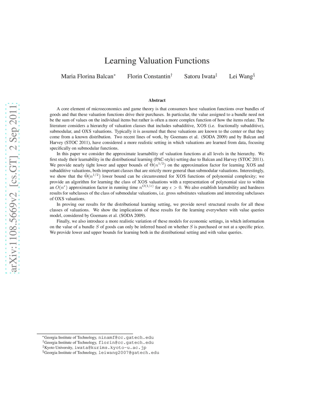 In this paper we study the approximate learnability of valuations commonly used throughout economics and game theory for the quantitative encoding of agent preferences. We provide upper and lower bounds regarding the learnability of important subclasses of valuation functions that express no-complementarities. Our main results concern their approximate learnability in the distributional learning (PAC-style) setting. We provide nearly tight lower and upper bounds of on the approximation factor for learning XOS and subadditive valuations, both widely studied superclasses of submodular valuations. Interestingly, we show that the lower bound can be circumvented for XOS functions of polynomial complexity; we provide an algorithm for learning the class of XOS valuations with a representation of polynomial size achieving an approximation factor in time for any . This highlights the importance of considering the complexity of the target function for polynomial time learning. We also provide new learning results for interesting subclasses of submodular functions. Our upper bounds for distributional learning leverage novel structural results for all these valuation classes. We show that many of these results provide new learnability results in the Goemans et al. model (SODA 2009) of approximate learning everywhere via value queries. We also introduce a new model that is more realistic in economic settings, in which the learner can set prices and observe purchase decisions at these prices rather than observing the valuation function directly. In this model, most of our upper bounds continue to hold despite the fact that the learner receives less information (both for learning in the distributional setting and with value queries), while our lower bounds naturally extend.