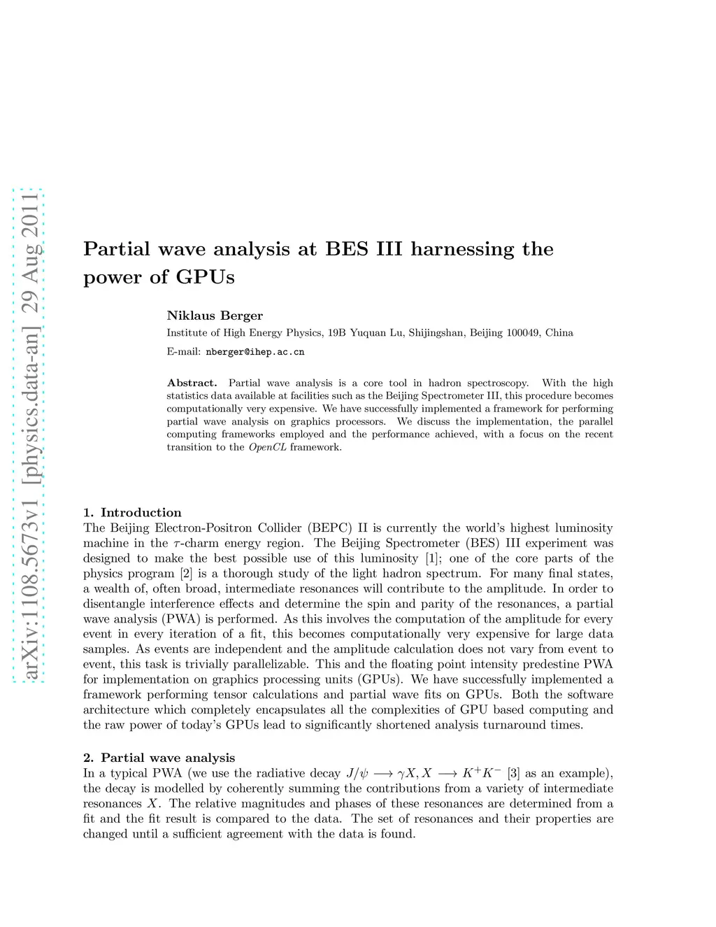 Partial wave analysis is a core tool in hadron spectroscopy. With the high statistics data available at facilities such as the Beijing Spectrometer III, this procedure becomes computationally very expensive. We have successfully implemented a framework for performing partial wave analysis on graphics processors. We discuss the implementation, the parallel computing frameworks employed and the performance achieved, with a focus on the recent transition to the OpenCL framework.