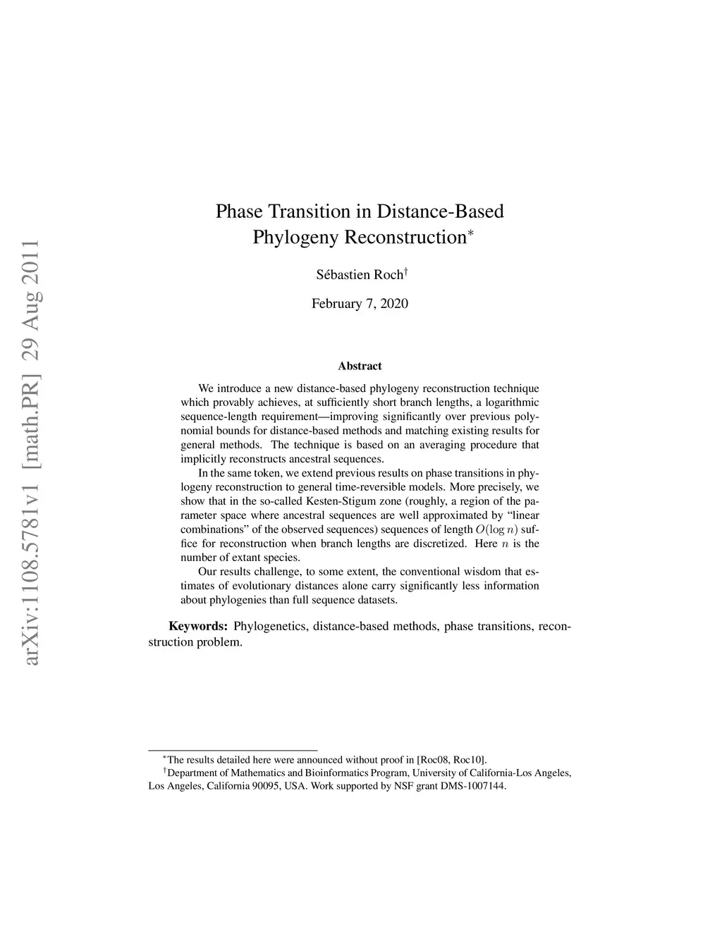 We introduce a new distance-based phylogeny reconstruction technique which provably achieves, at sufficiently short branch lengths, a logarithmic sequence-length requirement---improving significantly over previous polynomial bounds for distance-based methods and matching existing results for general methods. The technique is based on an averaging procedure that implicitly reconstructs ancestral sequences. In the same token, we extend previous results on phase transitions in phylogeny reconstruction to general time-reversible models. More precisely, we show that in the so-called Kesten-Stigum zone (roughly, a region of the parameter space where ancestral sequences are well approximated by "linear combinations" of the observed sequences) sequences of length suffice for reconstruction when branch lengths are discretized. Here is the number of extant species. Our results challenge, to some extent, the conventional wisdom that estimates of evolutionary distances alone carry significantly less information about phylogenies than full sequence datasets.