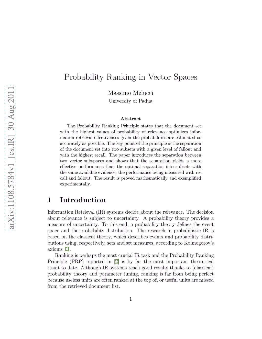 The Probability Ranking Principle states that the document set with the highest values of probability of relevance optimizes information retrieval effectiveness given the probabilities are estimated as accurately as possible. The key point of the principle is the separation of the document set into two subsets with a given level of fallout and with the highest recall. The paper introduces the separation between two vector subspaces and shows that the separation yields a more effective performance than the optimal separation into subsets with the same available evidence, the performance being measured with recall and fallout. The result is proved mathematically and exemplified experimentally.