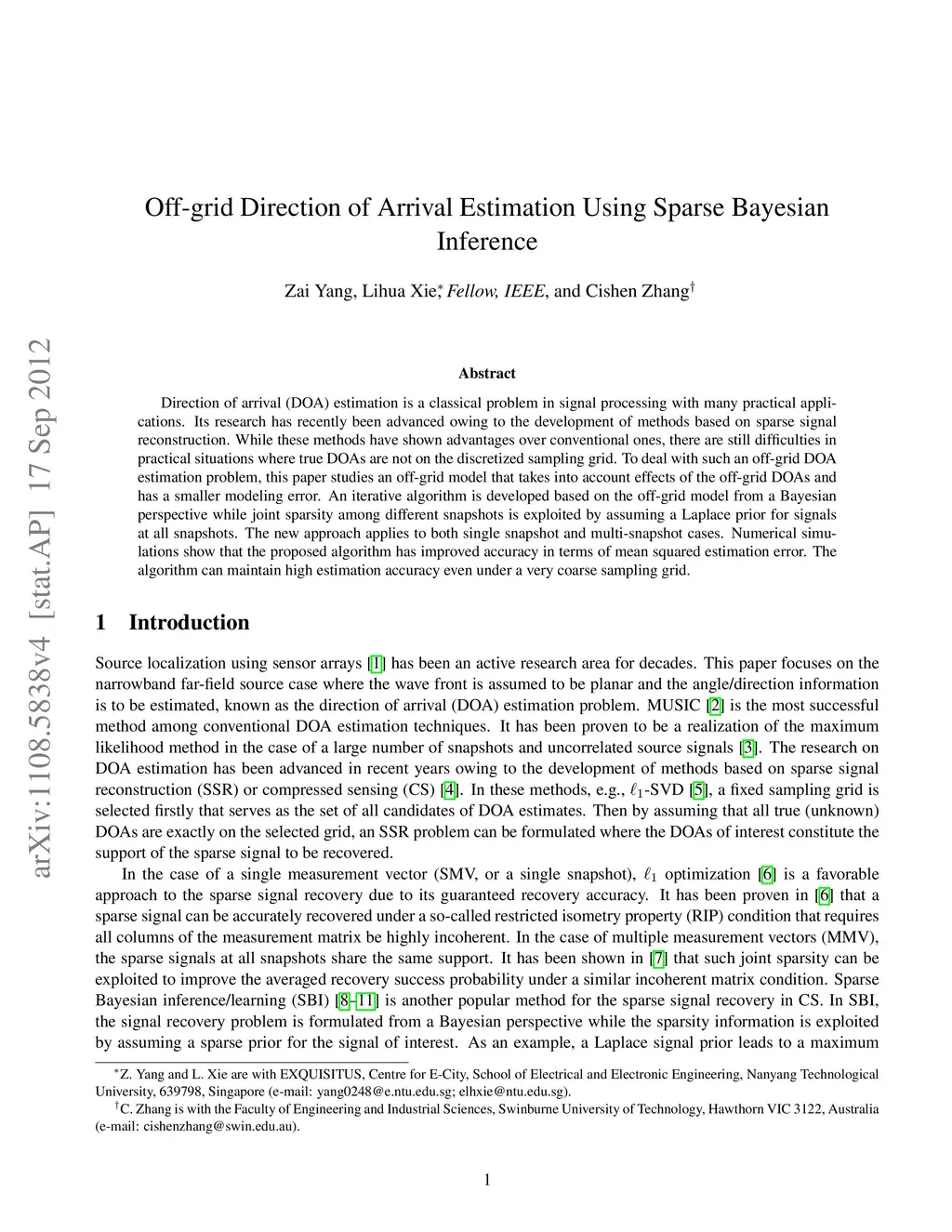 Off-grid Direction of Arrival Estimation Using Sparse Bayesian Inference
