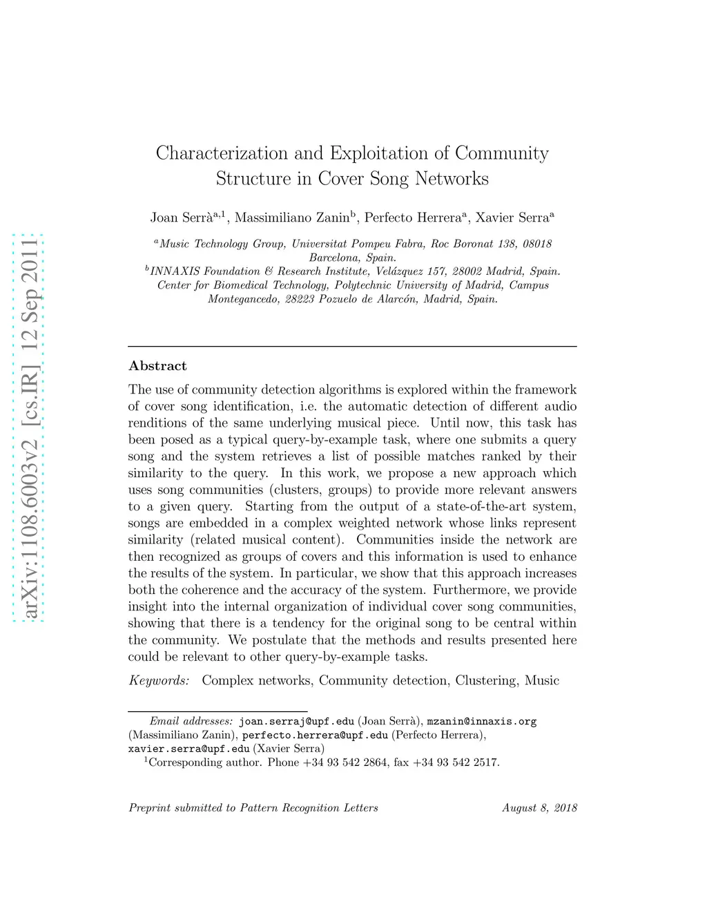 Characterization and exploitation of community structure in cover song