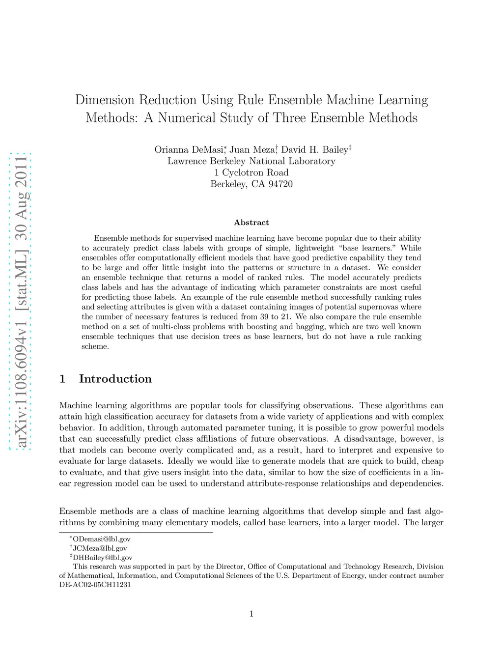 Dimension Reduction Using Rule Ensemble Machine Learning Methods: A