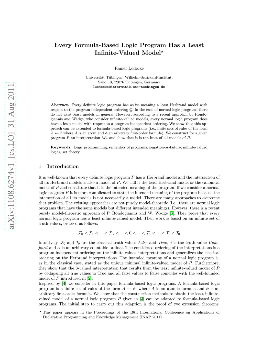 Every Formula-Based Logic Program Has a Least Infinite-Valued Model