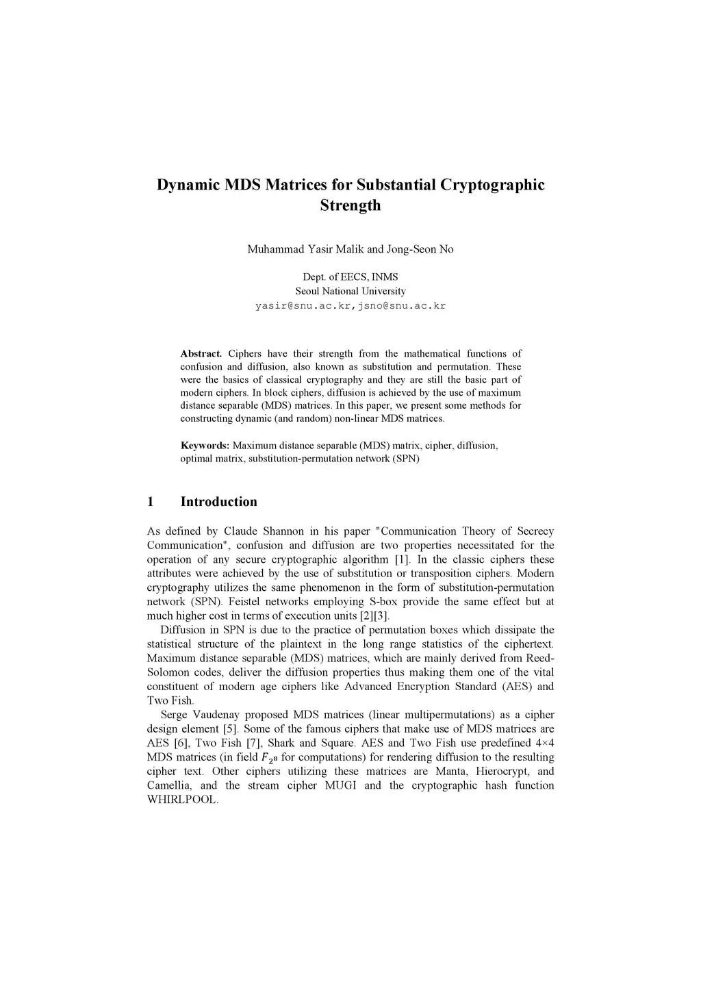 Dynamic MDS Matrices for Substantial Cryptographic Strength
