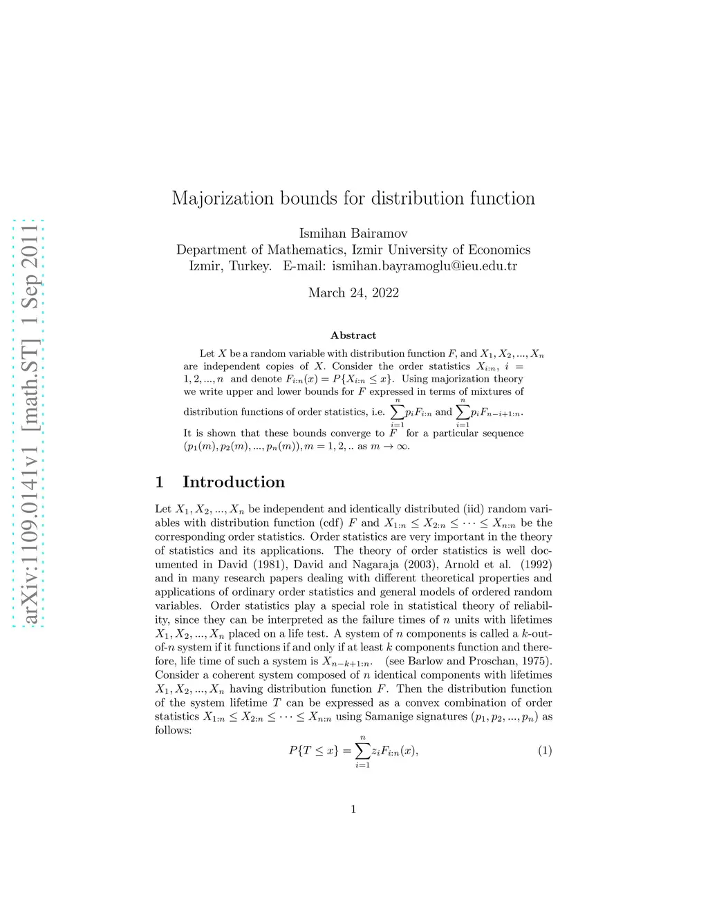 Let be a random variable with distribution function and are independent copies of Consider the order statistics and denote Using majorization theory we write upper and lower bounds for expressed in terms of mixtures of distribution functions of order statistics, i.e. and It is shown that these bounds converge to \ for a particular sequence as